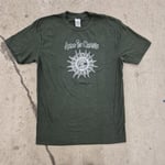 Purple and blue multi colour ink print on American Apparel mint green tee XS